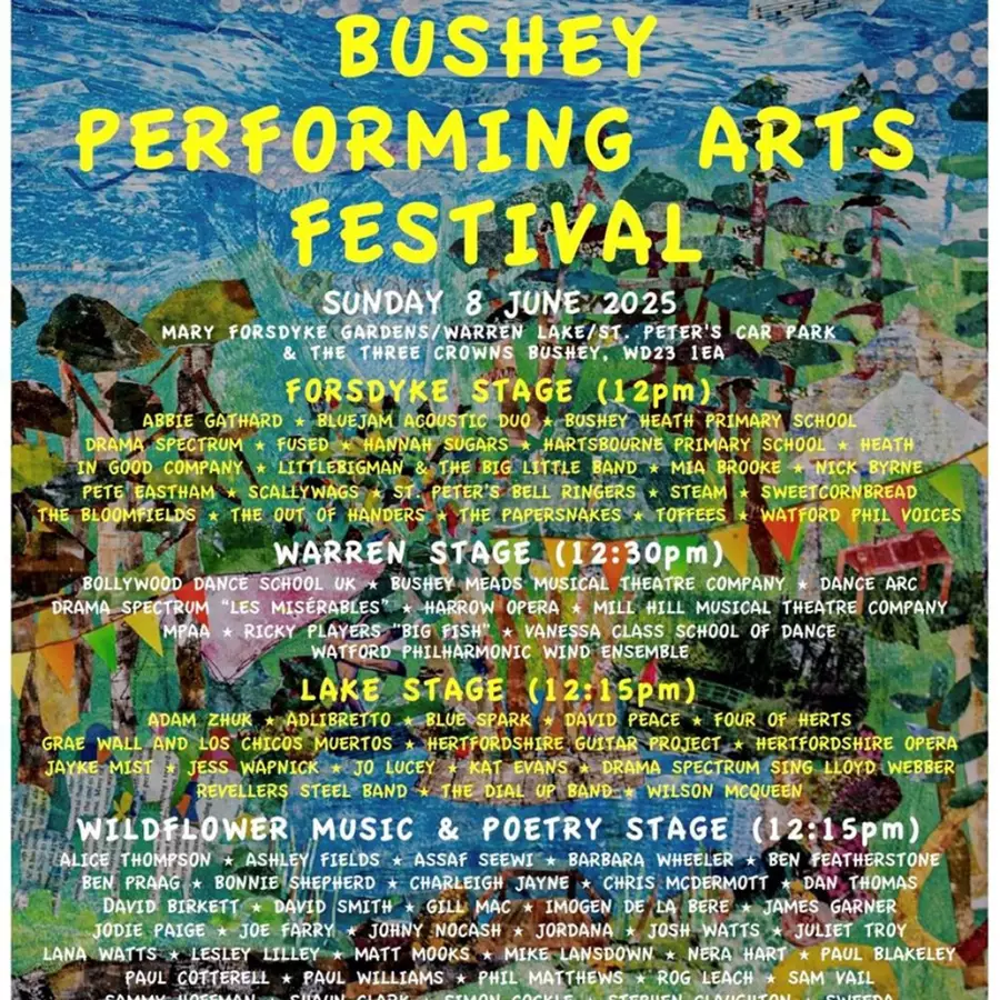Family and friends, it's time to gather for an amazing day of fun and entertainment at Bushey Performing Arts Festival! With 100 local talented artists set to perform throughout the day and into the evening, plus it's free!